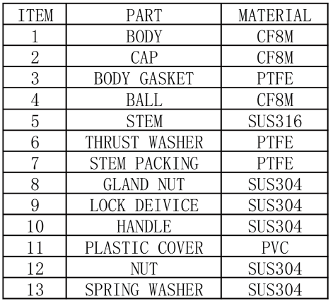 Material list - 1 Piece Stainless Ball Valve