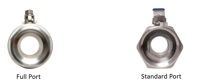 - ● Standard Port: It has a visibly smaller internal opening that is smaller than the valves threaded end connections and has a ‘shoulder’ inside that decreases the diameter.
